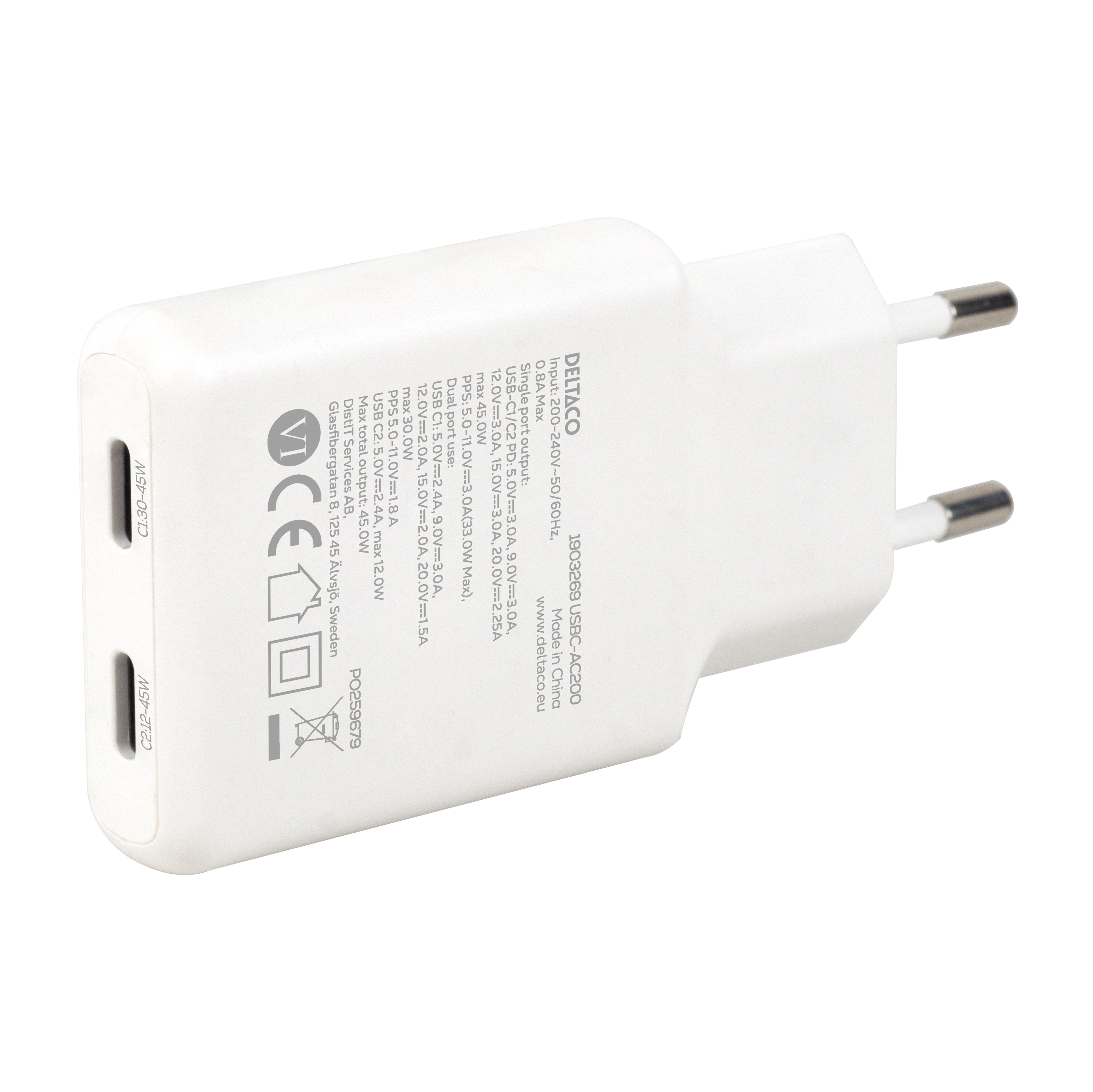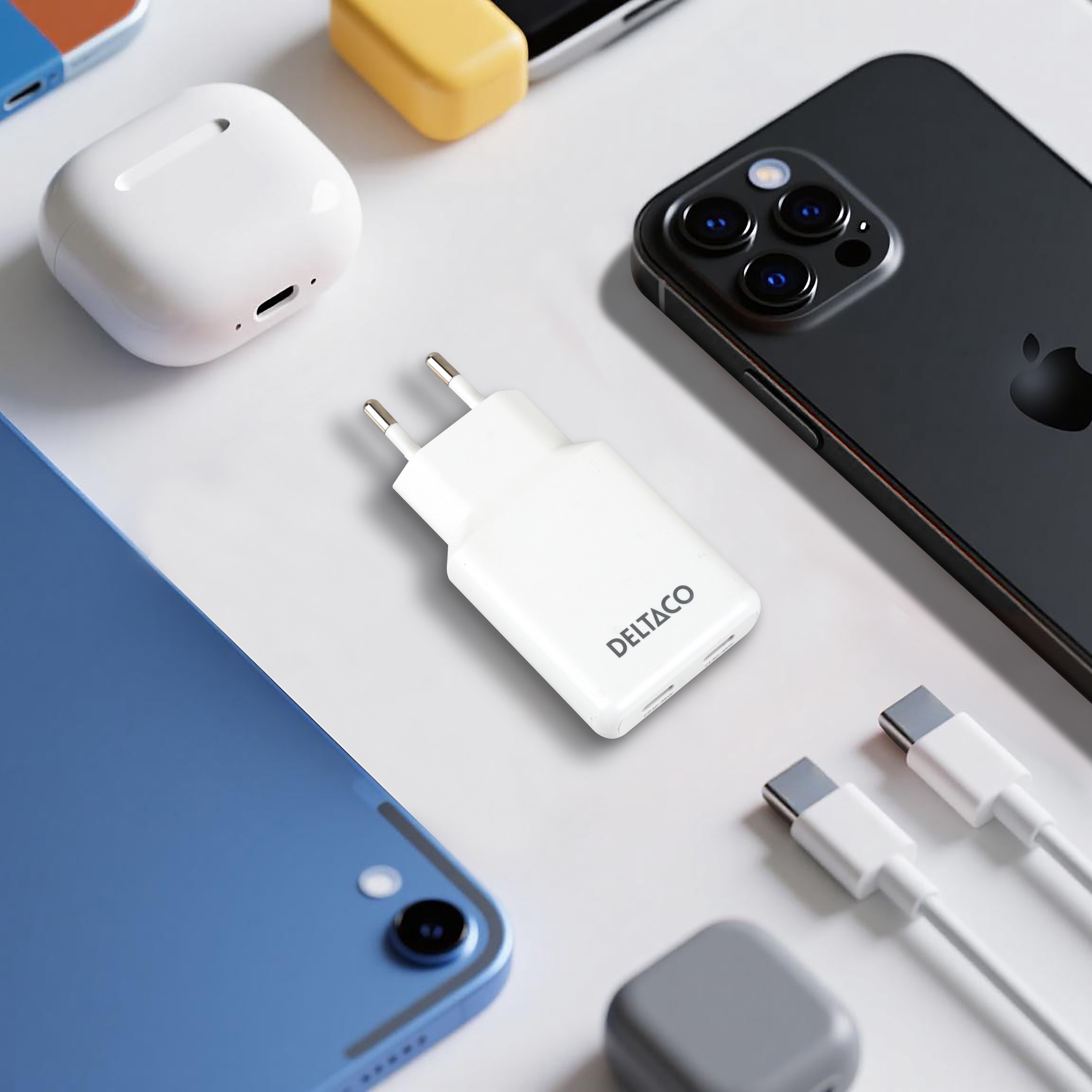 USB-C wall charger 45 W, 2x USB-C PD, slim size, total output 45 W