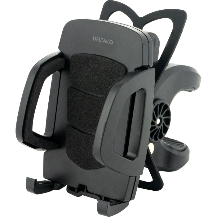 DELTACO smartphone mount for bicycles easily attaches to the handlebars of your bike and keeps your device at hand and securely in place, ideal for navigation or for measuring your performance during bike rides.