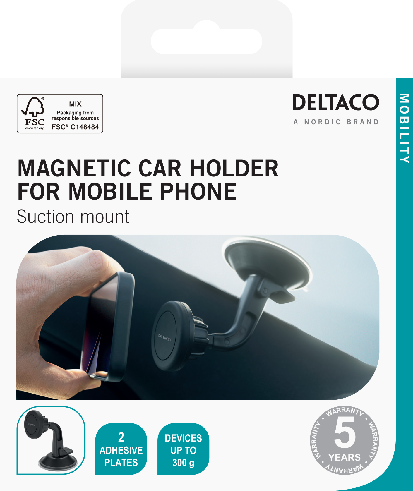 Magnetic car holder, suction mount, for mobile phone, black